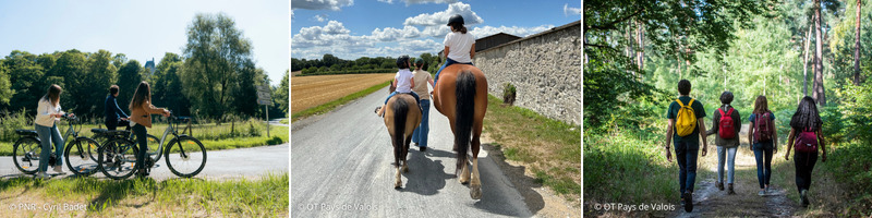 Dans nos premières réalisations, nous avons amorcé le développement du triptyque « à pied, à cheval, à vélo », véritable fil rouge pour explorer le Pays de Valois autrement. L’idée est de valoriser les mobilités douces tout en proposant des parcours adaptés à chaque envie de découverte : randonnées pédestres pour s’imprégner de la nature et du patrimoine, balades équestres au cœur des paysages agricoles et forestiers, itinéraires vélo pour relier les sites emblématiques du territoire.